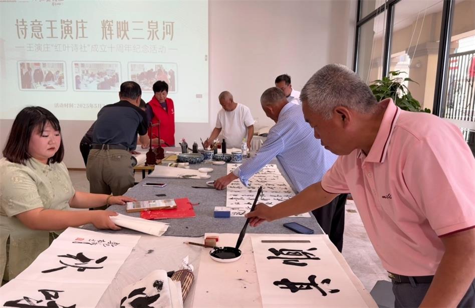 近日,即墨区蓝村街道王演庄“红叶诗社”,在区诗词学会领导、诗社成员以及诗词爱好者和学员的共同见证下,举办了庆祝创社十周年系列活动。大家以诗为媒,欢聚一堂、书画齐作,回顾十年来弘扬中华诗词文化的旅程和故事,共同感受诗词的人文情怀和独特魅力。