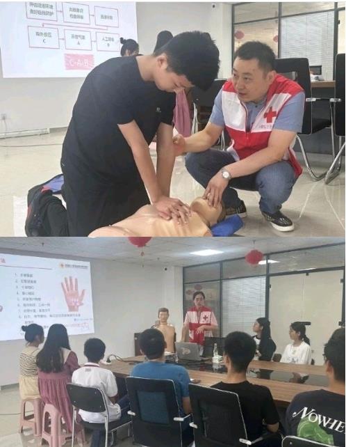 在理论讲解环节,红十字会的老师凭借丰富的专业知识和教学经验,用简洁明了的语言系统讲解了应急救护的基础知识。从如何快速判断现场环境安全性、识别伤者意识与呼吸状态,再到进行胸外按压和人工呼吸,每一个步骤都讲解得清晰透彻,并结合实际案例,让同学们直观感受到“黄金急救时间”的重要性,深刻理解掌握急救技能的必要性。