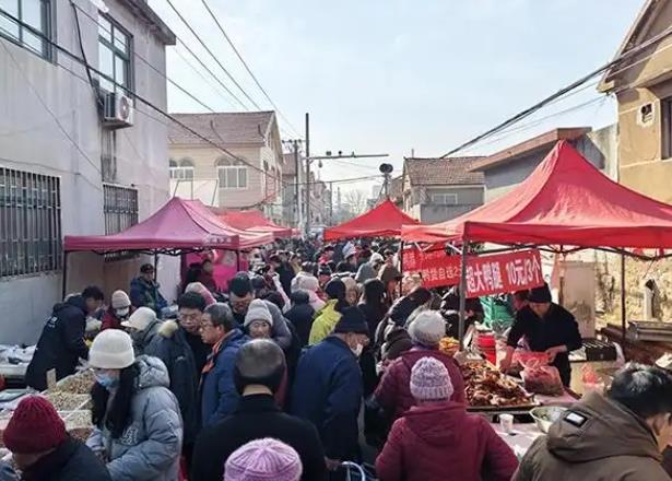 年关渐近,青岛市即墨区鳌山卫街道海洋大集年味十足,借着蓝谷快线的便利,迎来客流高峰,街巷内人头攒动、烟火升腾。