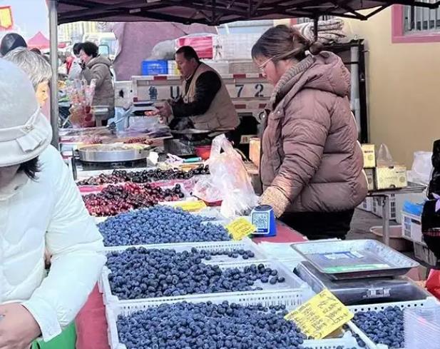 水果摊前色彩缤纷,砂糖橘、车厘子、蓝莓堆成小山,本地草莓带着露珠,吸引顾客驻足尝鲜。