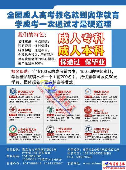 (一)、报名时间:青岛奥华学校即日起办理报名手续。报名时需带一寸近期免冠照片2张,身份证复印件,大专毕业证复印件(专升本)。