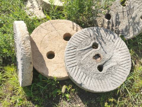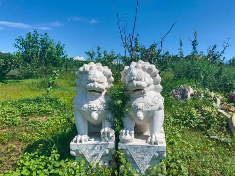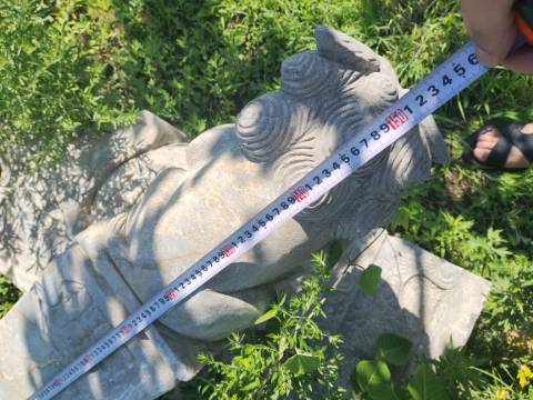 物品名称及描述:旧石磨盘一百个左右石狮子一对一米二,石鼓一对一米三