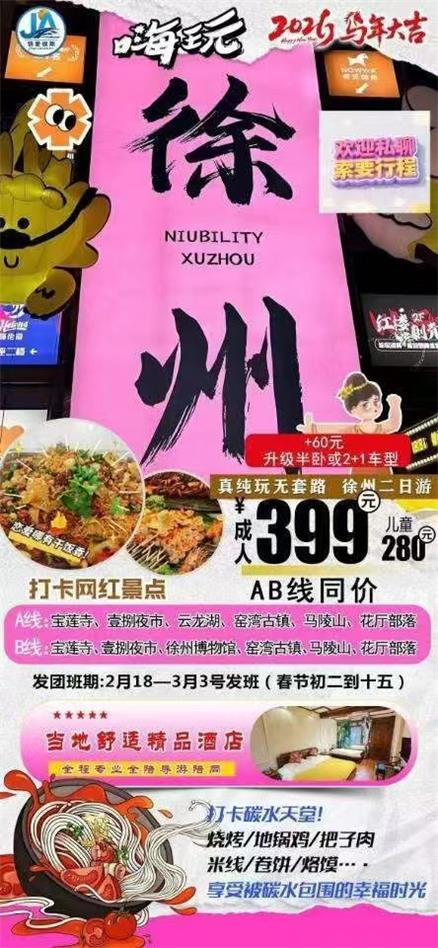 ✅AB双线路任选:宝莲寺祈福、窑湾古镇寻韵,天然氧吧马陵山、逛吃壹捌夜市、徐州博物馆、云龙湖等