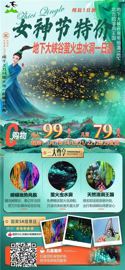 ✅1日游【地下大峡谷+萤火虫水洞】成人99元👩🦰儿童79元👧